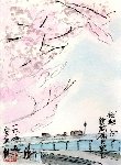 春を象徴する花は何と言っても桜でその淡い色は私たちの目をひきつけ、この時期だけに限ってあたかも自分の存在を誇示しているように感じさせます。私は今年も桜に誘われてあちこちの名所を訪れ、かなりの桜を描くことができました。特に今回は桜に隣接する建物などをモチーフとし、桜を脇役に仕立てて描くことに専念したつもりです。なお最後の2枚は桜とは異なった話題性のあるモチーフを取り上げてみました。