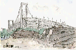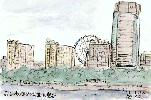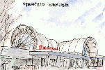 1月中旬の3連休を東京方面で過ごし、東京臨海副都心と鎌倉の寺寺をめぐって何枚かの絵を描きました。臨海副都心はバブル初期の平成の初めに開発が開始されバブル崩壊後は開発がペースダウンしたものの、近代的な建築物や施設が立ち並ぶ現代文化の象徴ともいえる街です。鎌倉は今から700年以上も前の古い文化とたたずまいを残しています。一日ずつまったく違う文化に接して絵を描くというのは私のこの上ない幸せで、また天候にも恵まれた暖かい日でしたので、足を使っての葉書絵制作には最適でした。